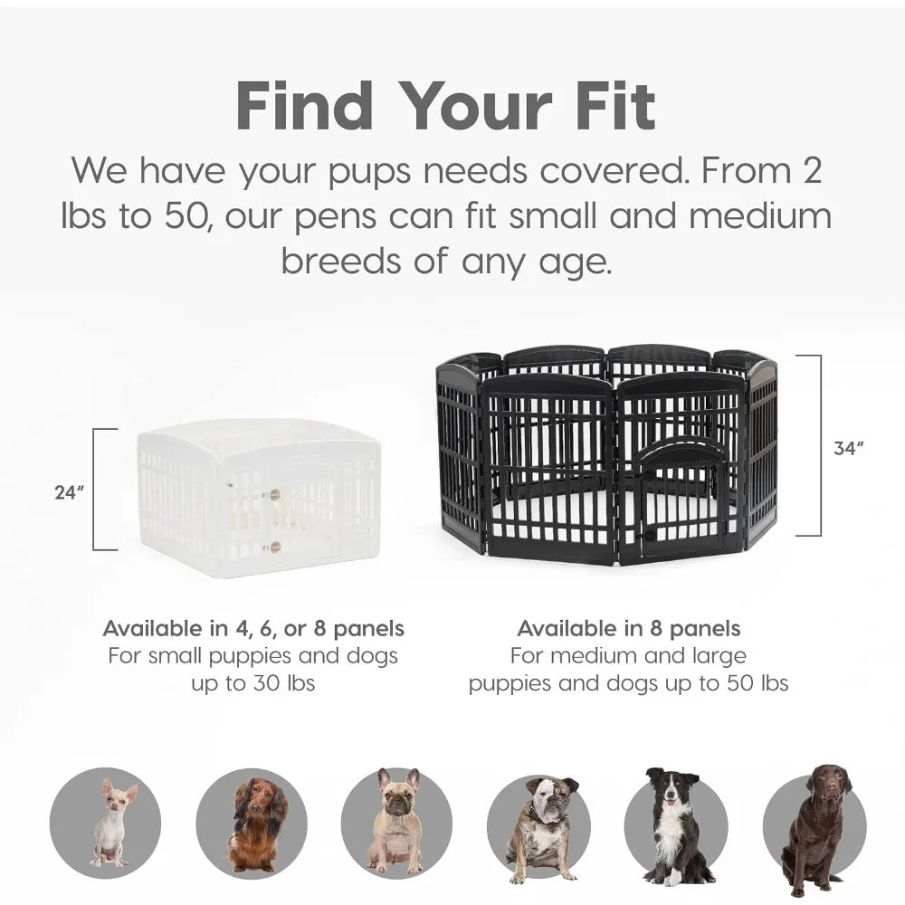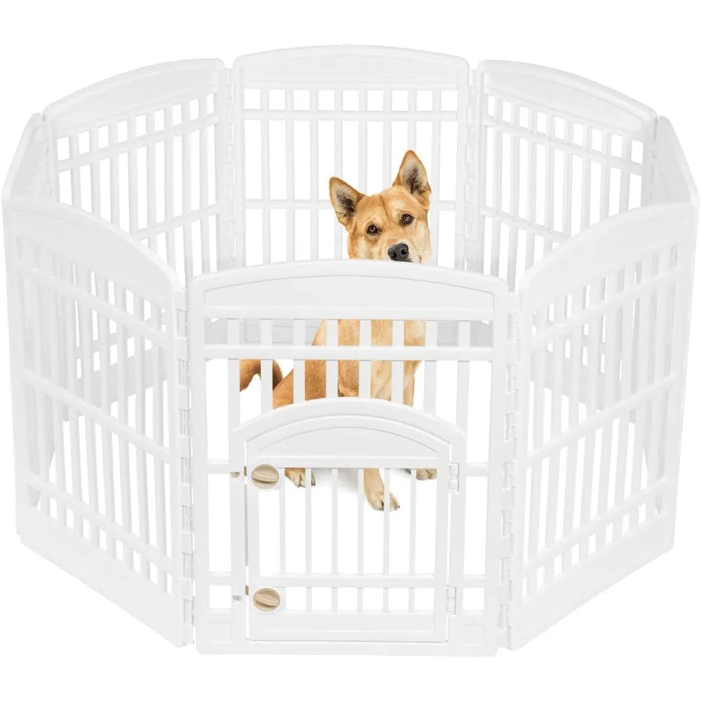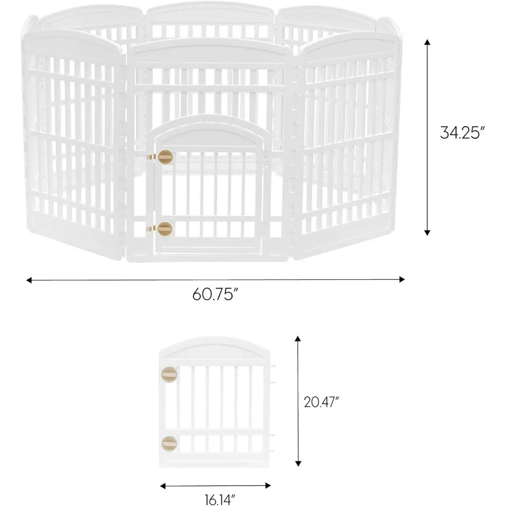 8-Panel 34" Pet Playpen with Door, Indoor/Outdoor Dog Pen, 63 x 63 x 34, Foldable, Customizable, White